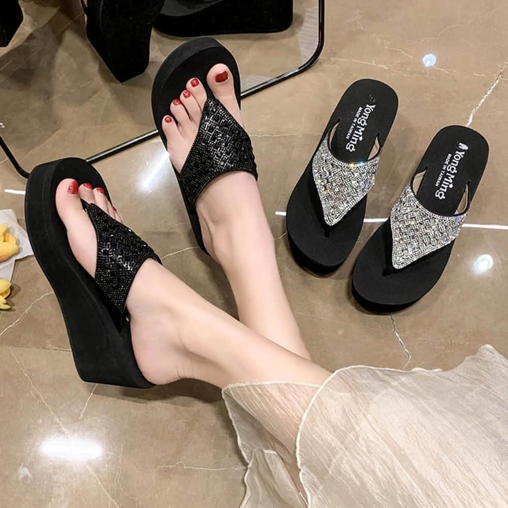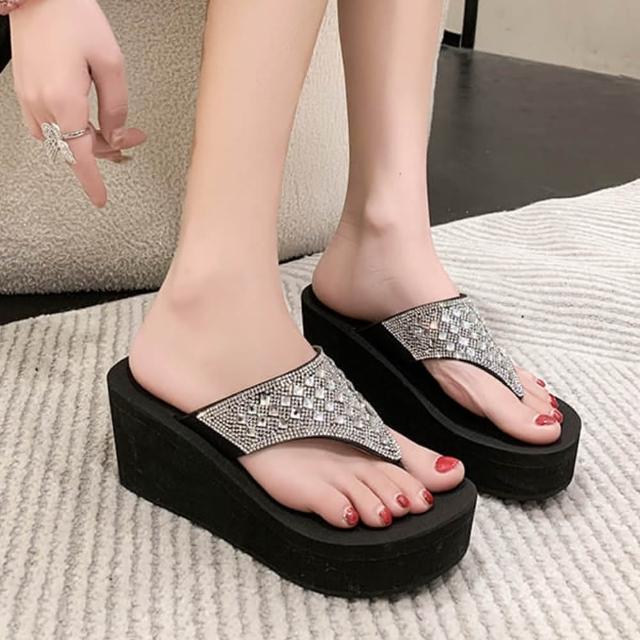 baibeauty 白鳥麗子MIT優雅V型水鑽夾腳厚底拖鞋楔型鞋