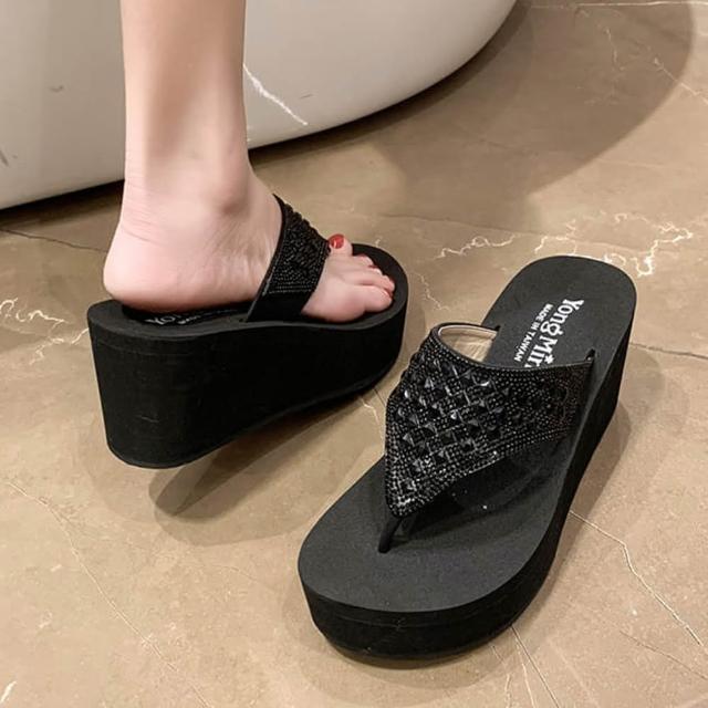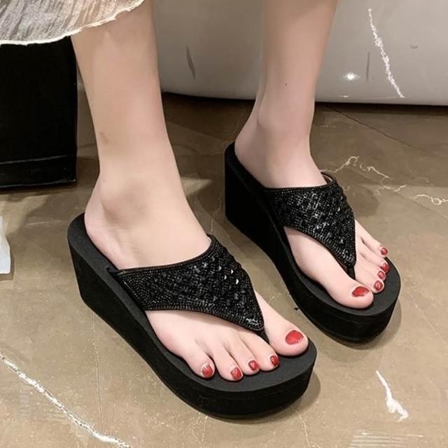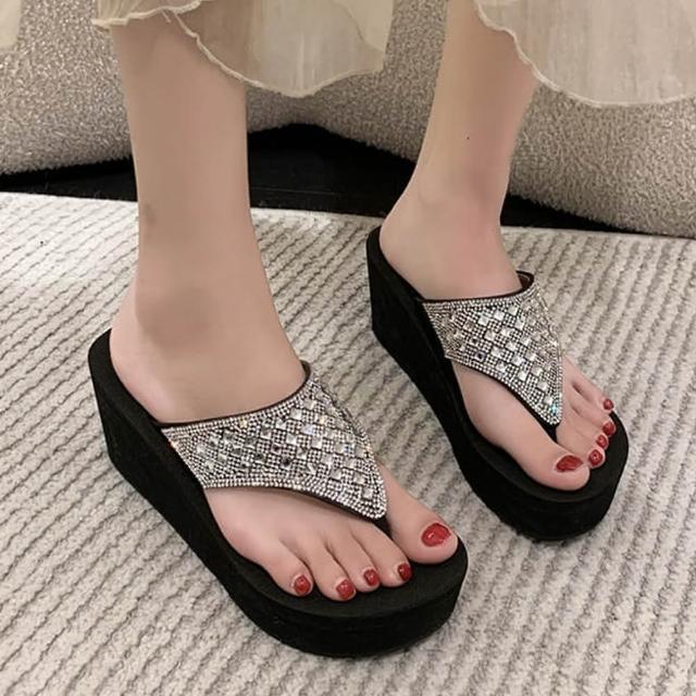 baibeauty 白鳥麗子MIT優雅V型水鑽夾腳厚底拖鞋楔型鞋