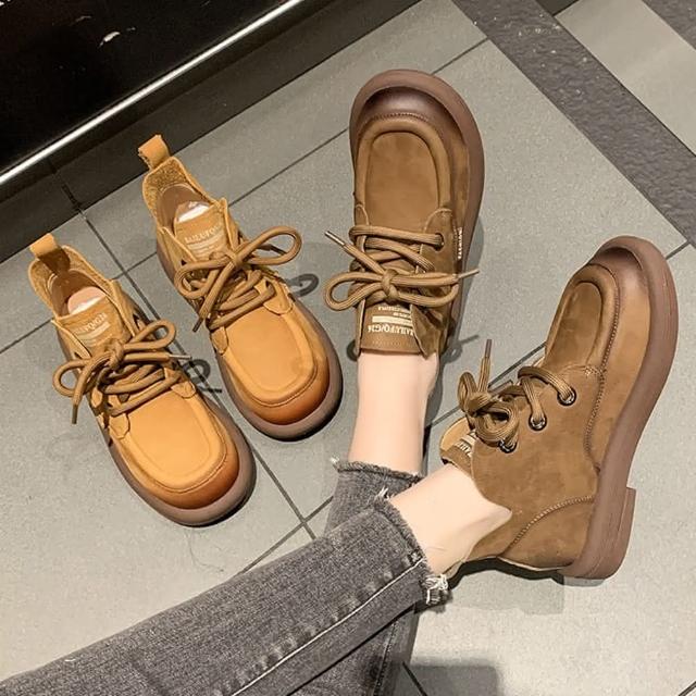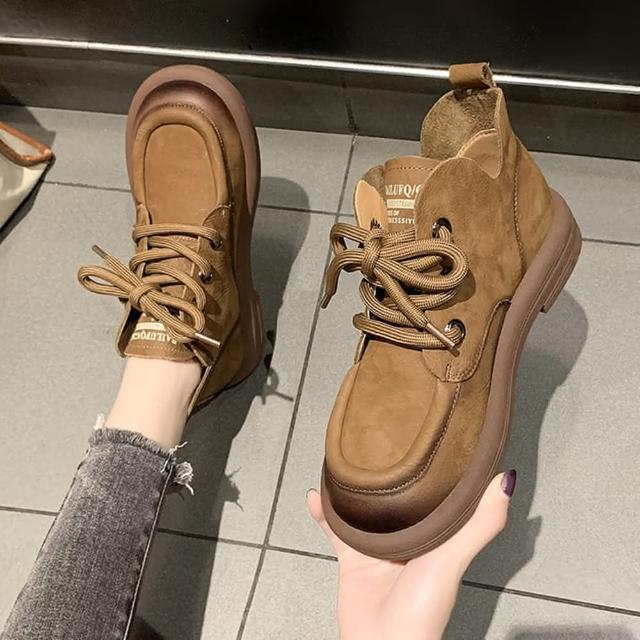 baibeauty 白鳥麗子復古漸層繫帶側V口厚底短筒靴馬汀靴
