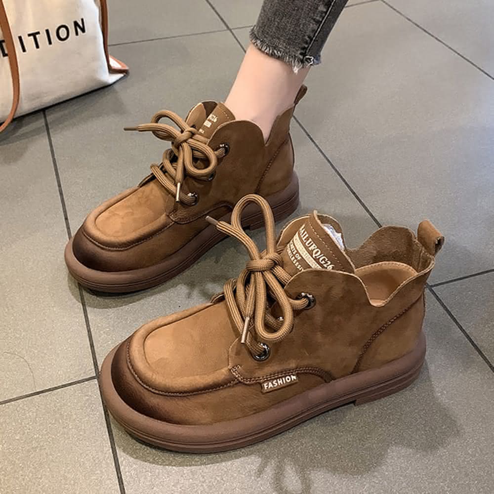 baibeauty 白鳥麗子復古漸層繫帶側V口厚底短筒靴馬汀靴