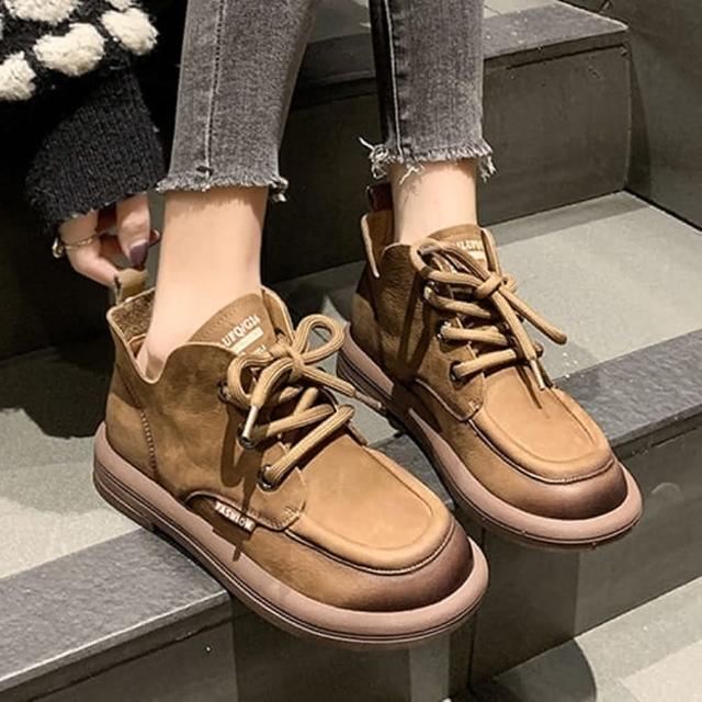 baibeauty 白鳥麗子復古漸層繫帶側V口厚底短筒靴馬汀靴