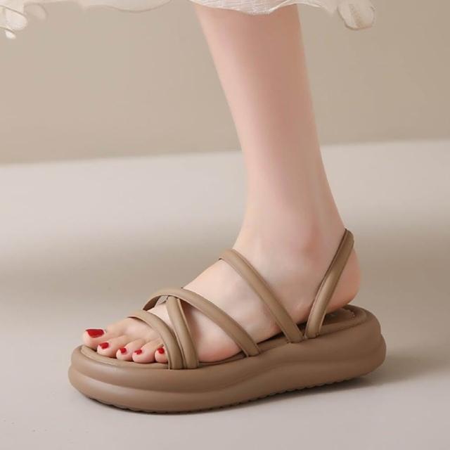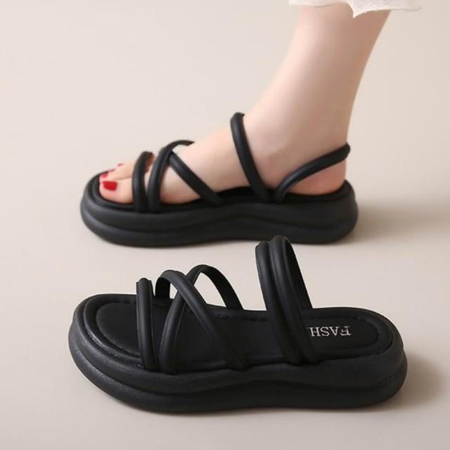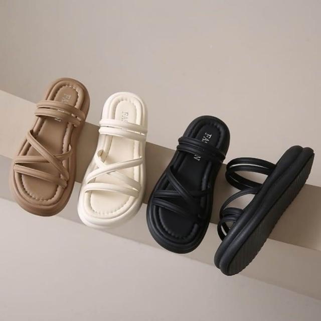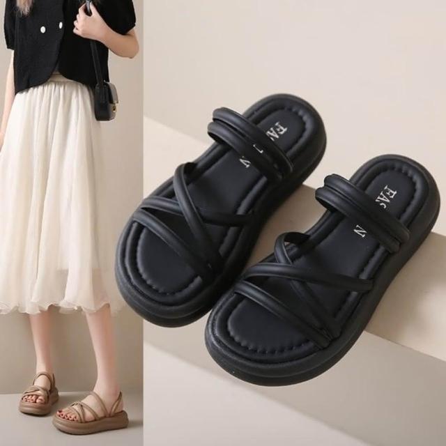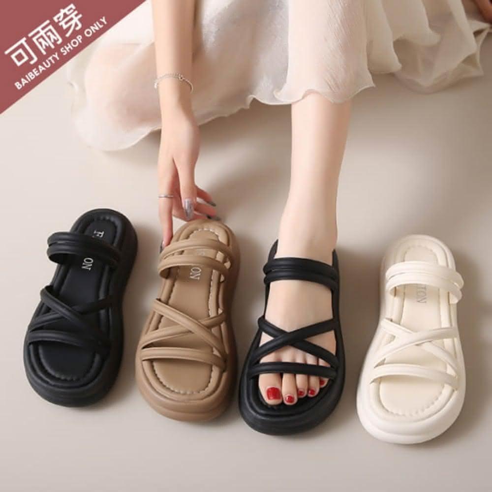 baibeauty 白鳥麗子韓風素色線條交叉厚底涼鞋/拖鞋可兩穿