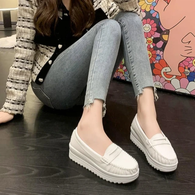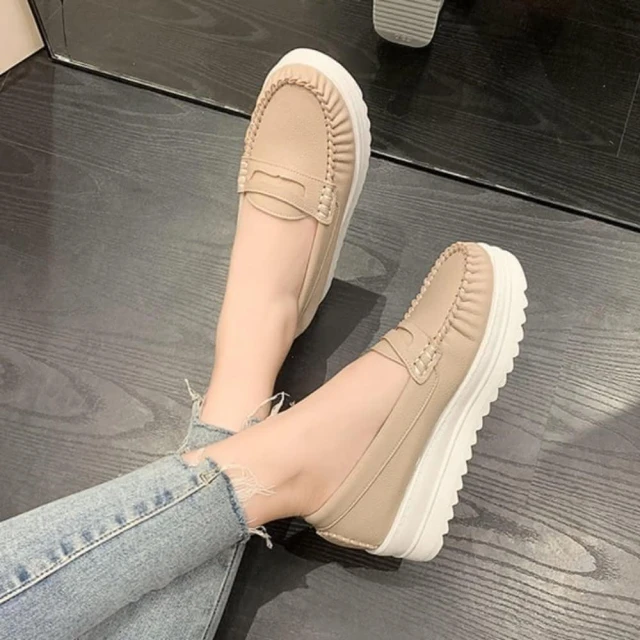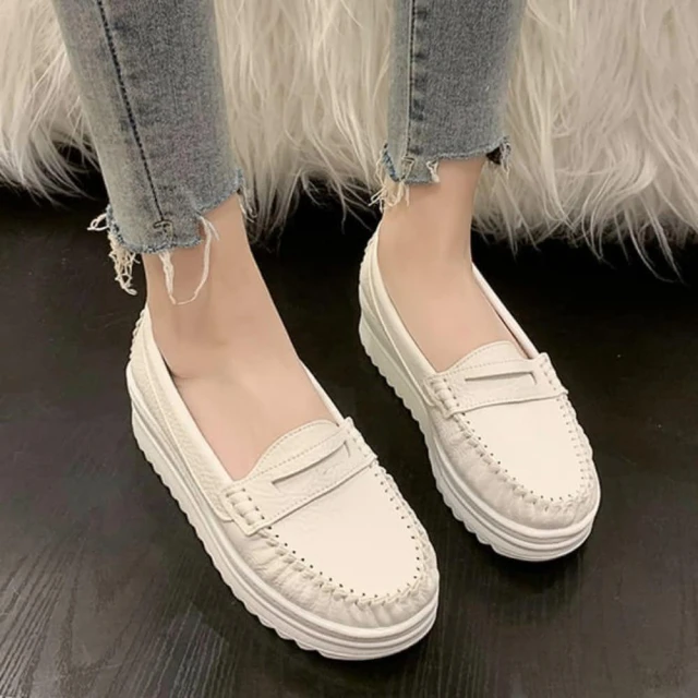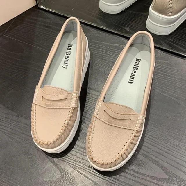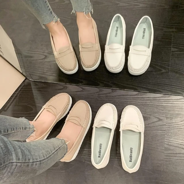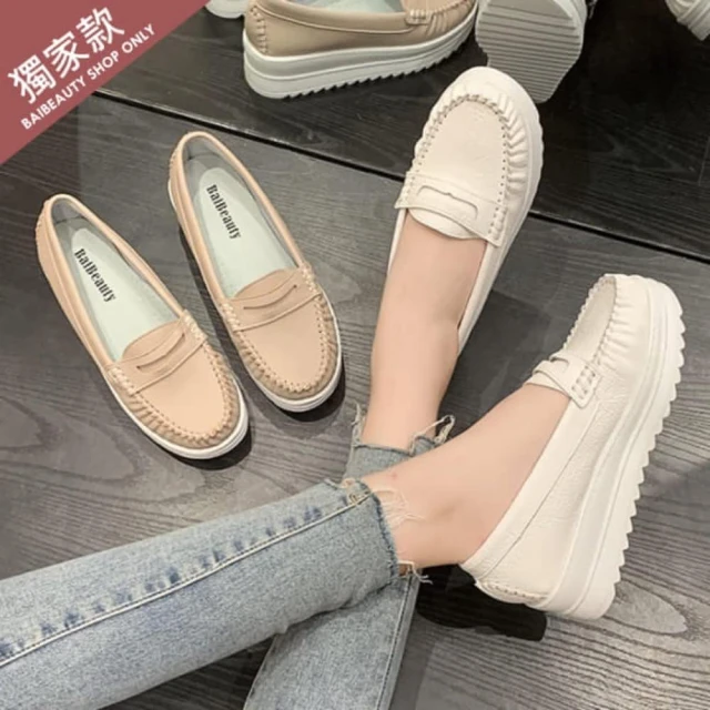 baibeauty 白鳥麗子MIT簡約素色皮革一字帶厚底包鞋懶人鞋