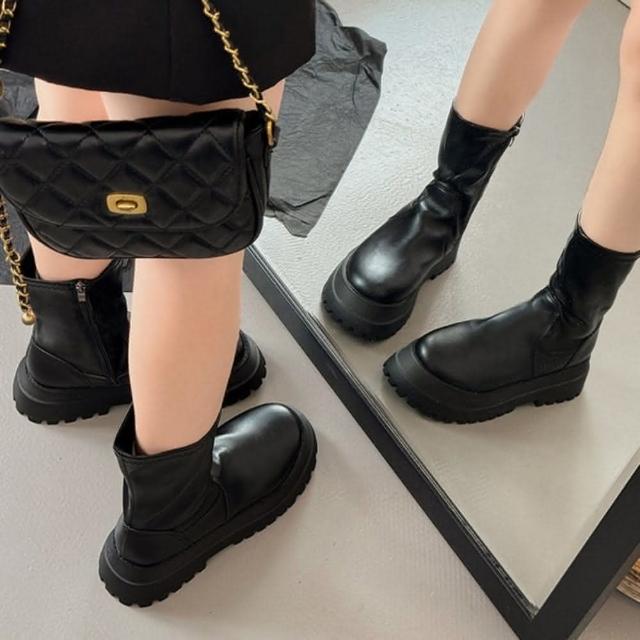 baibeauty 白鳥麗子時尚黑色皮革側拉鍊厚底短靴