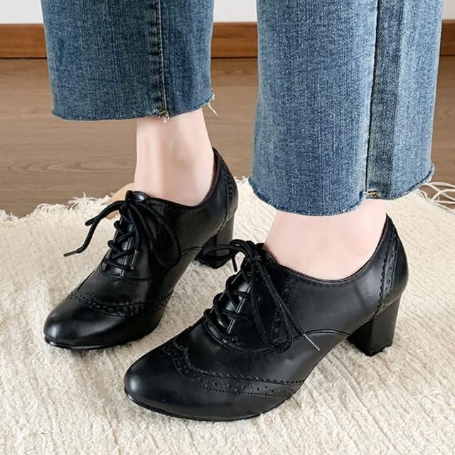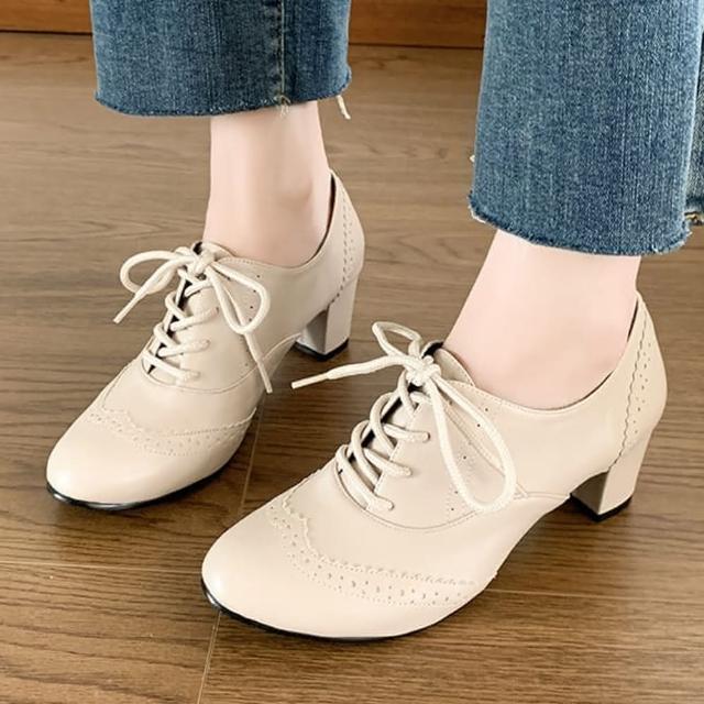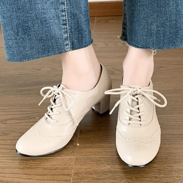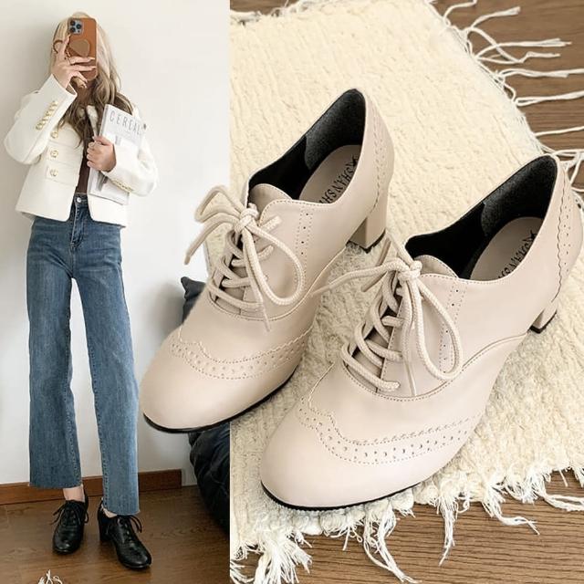 baibeauty 白鳥麗子MIT日系皮革雕花紋繫帶踝靴高跟靴