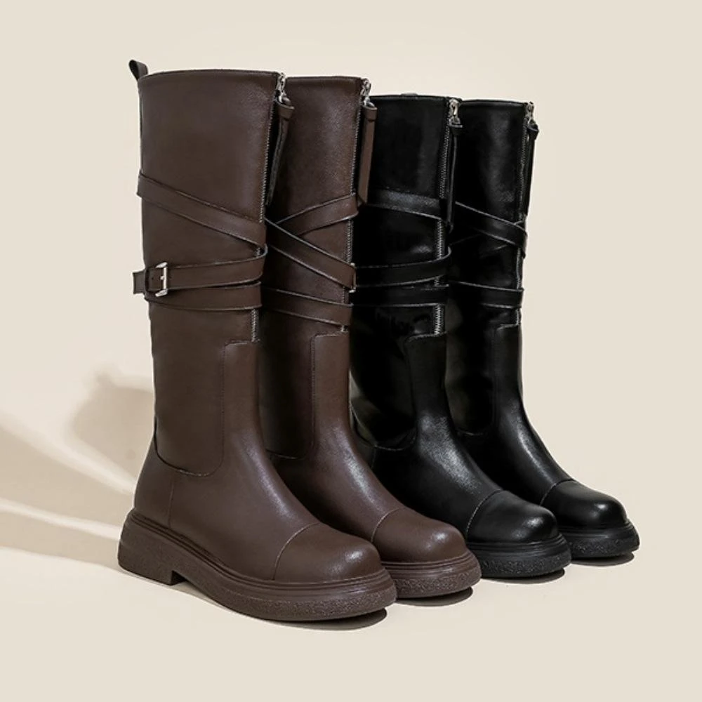 baibeauty 白鳥麗子交叉釦環拉鍊低跟長靴/中筒靴全筒圍可兩穿反摺靴子