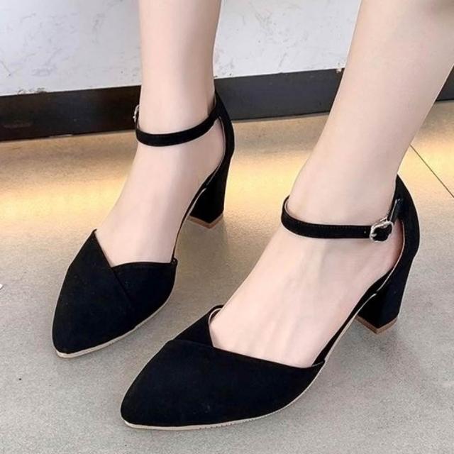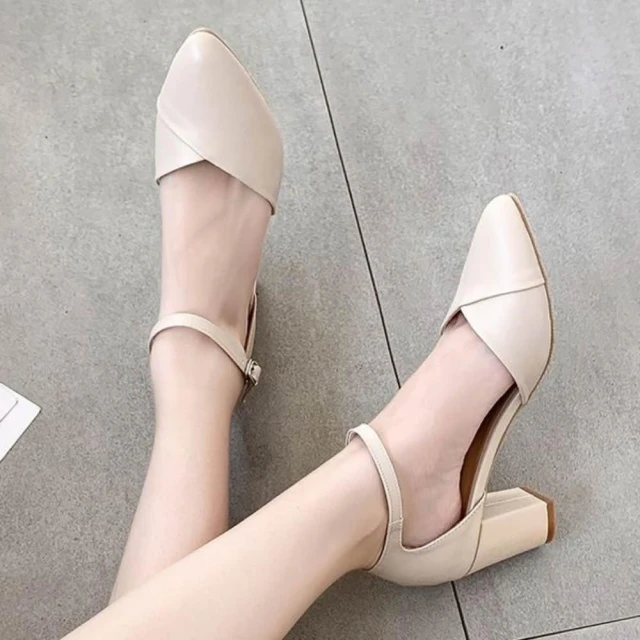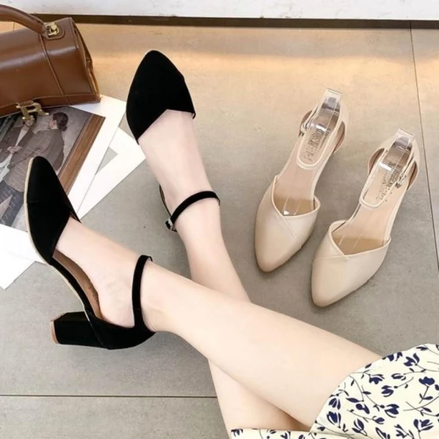 baibeauty 白鳥麗子MIT雜誌經典V字拼接繞踝粗跟包鞋高跟鞋