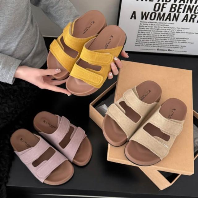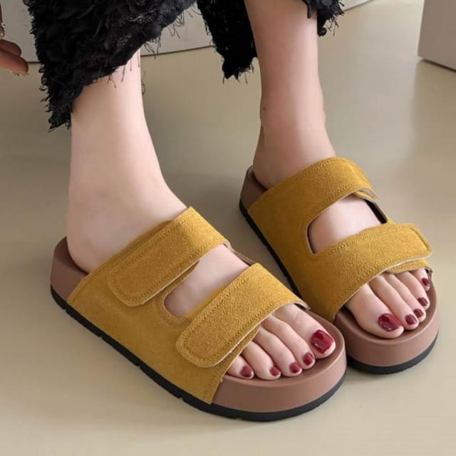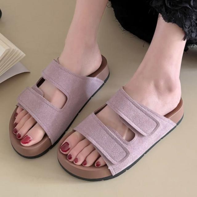 baibeauty 白鳥麗子舒適輕量麂皮魔鬼氈厚底拖鞋