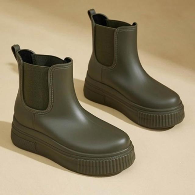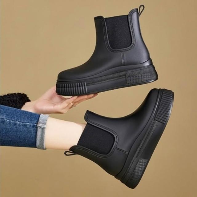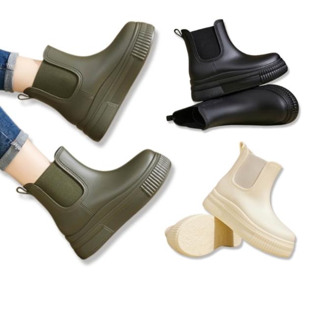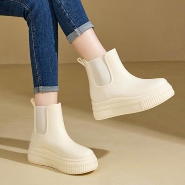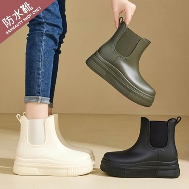 baibeauty 白鳥麗子雨鞋 雨靴 街頭皮革拼接切爾西防水雨靴 36-41全尺碼 短靴