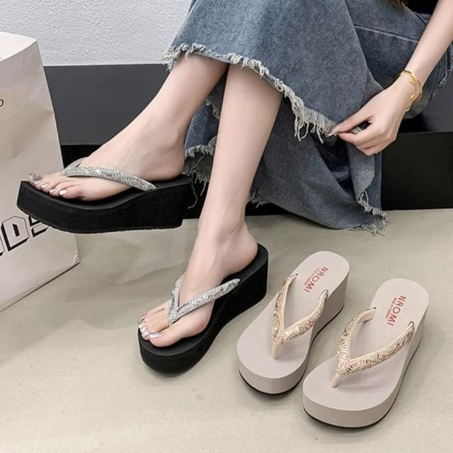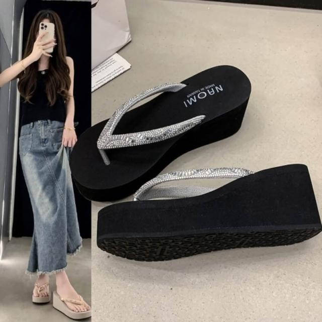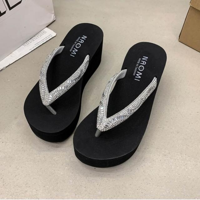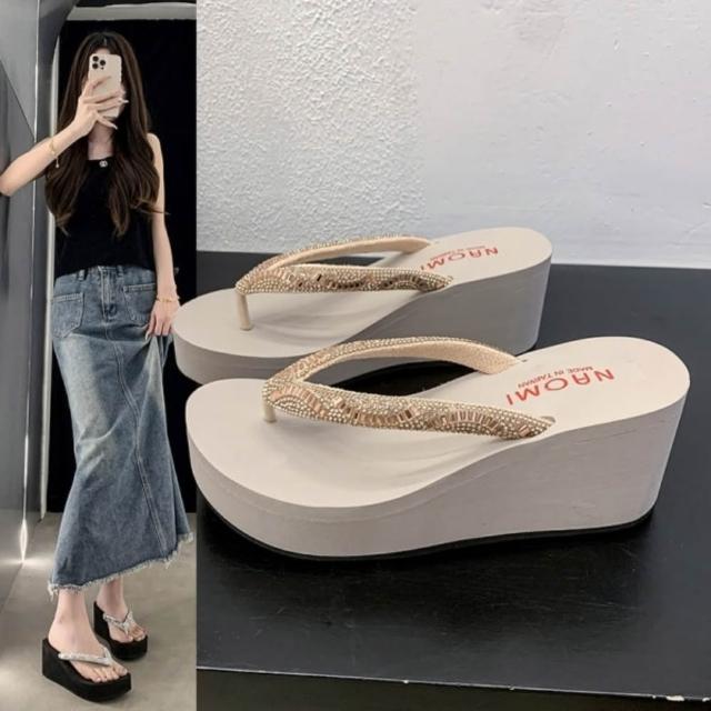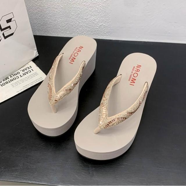 baibeauty 白鳥麗子MIT優雅水鑽夾腳厚底拖鞋楔型鞋