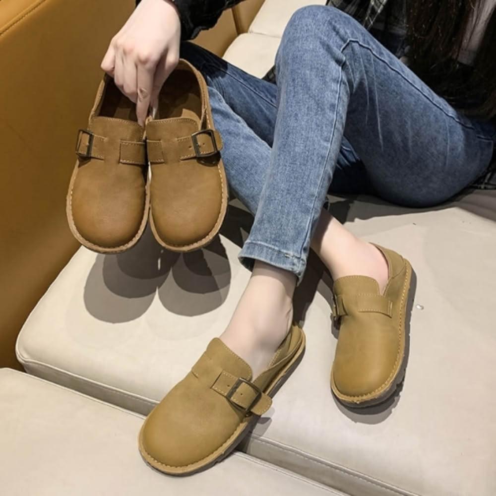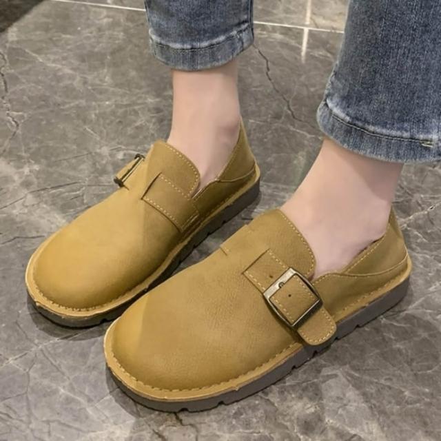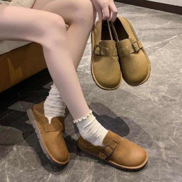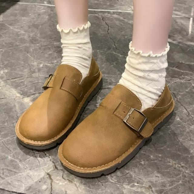 baibeauty 白鳥麗子復古皮革金屬釦平底小皮鞋包鞋兩穿可後踩鞋 35-42全尺碼