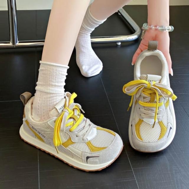 baibeauty 白鳥麗子拚色絨面拼接網布綁帶圓頭休閒鞋運動鞋