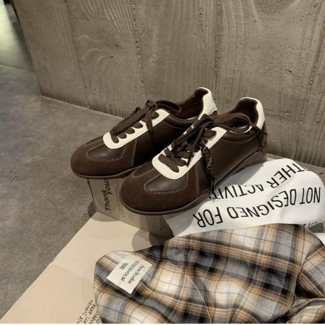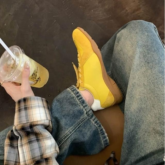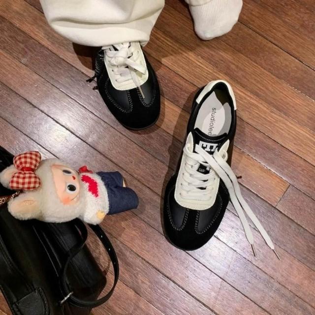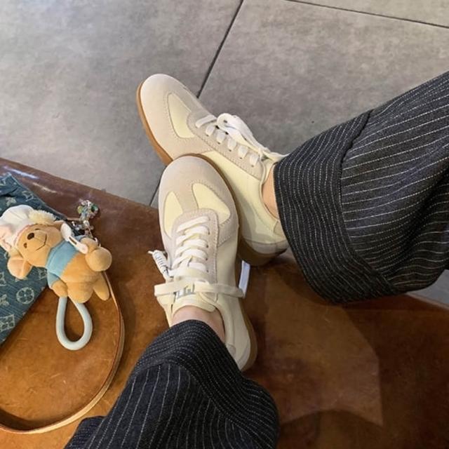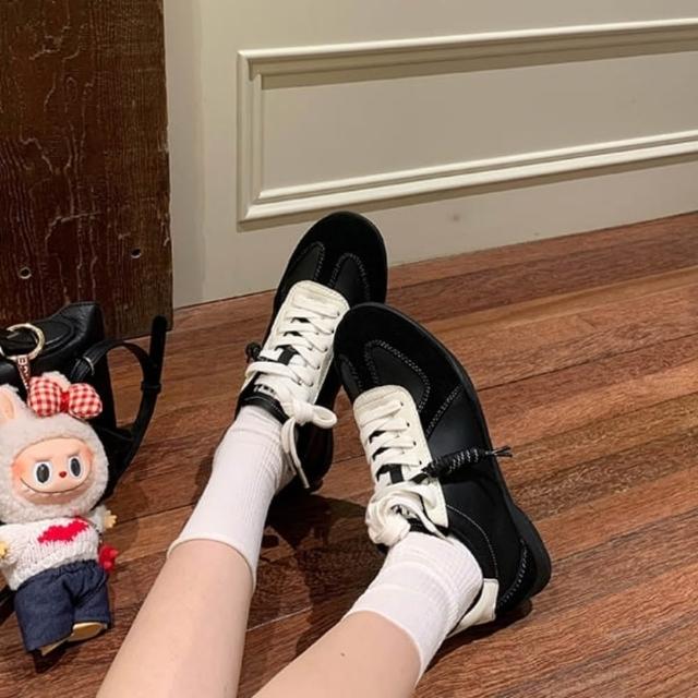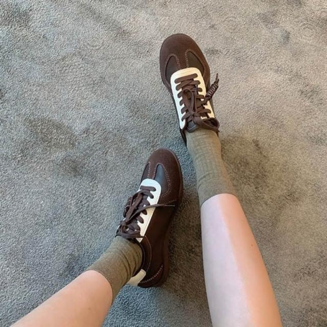 baibeauty 白鳥麗子復古絨面拼色綁帶圓頭運動包鞋休閒鞋