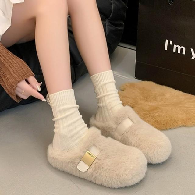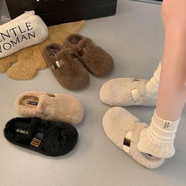 baibeauty 白鳥麗子溫柔毛毛拼接一字帶金屬厚底拖鞋穆勒鞋