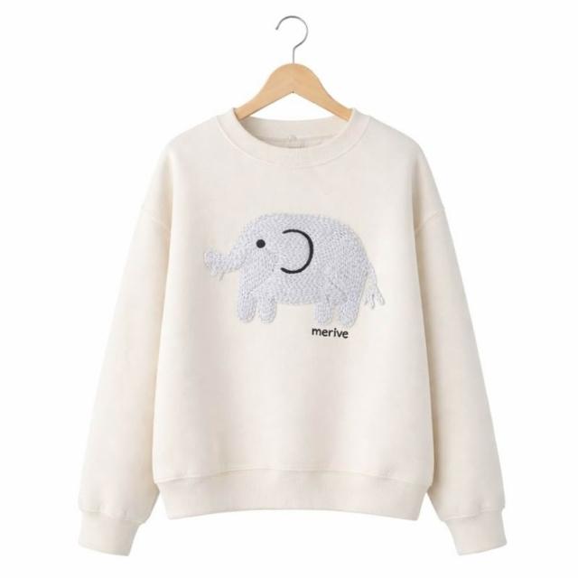 baibeauty 白鳥麗子韓國製.可愛大象刺繡落肩圓領長袖上衣