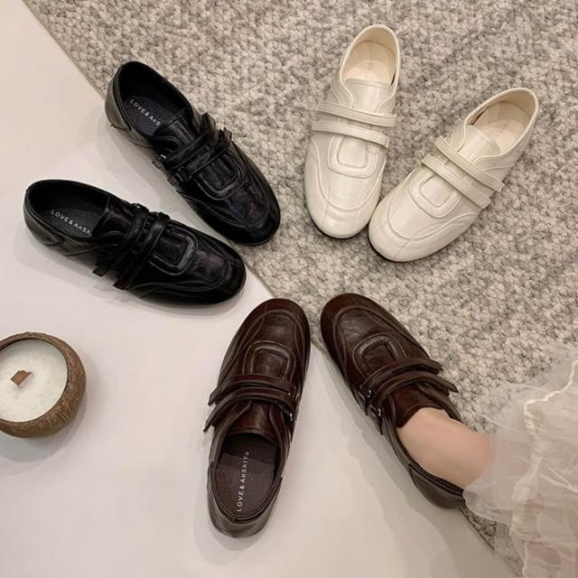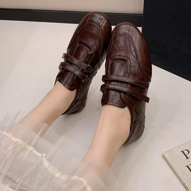baibeauty 白鳥麗子內增高鞋.簡約皮革魔鬼氈雙帶圓頭包鞋