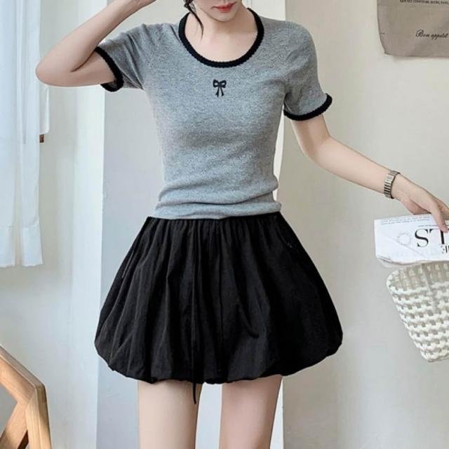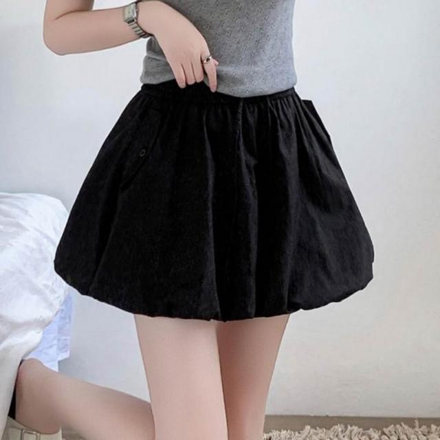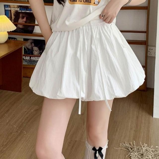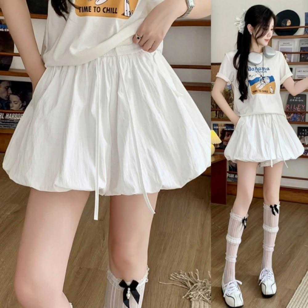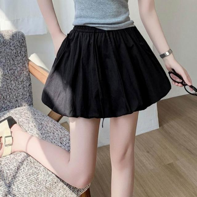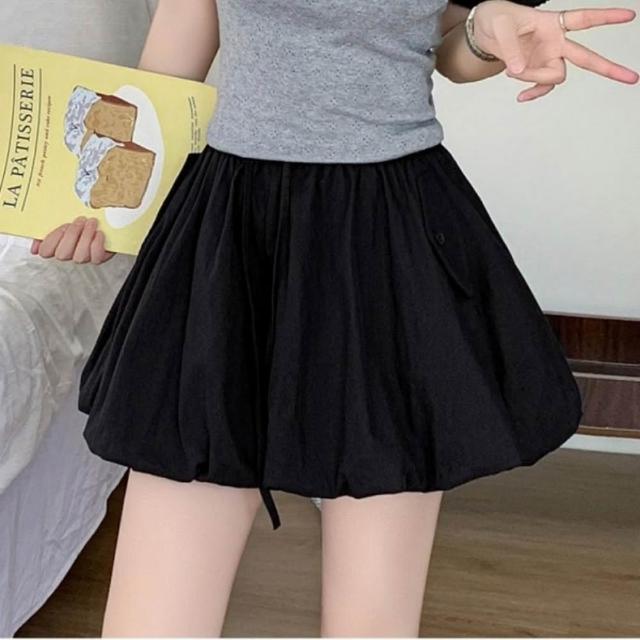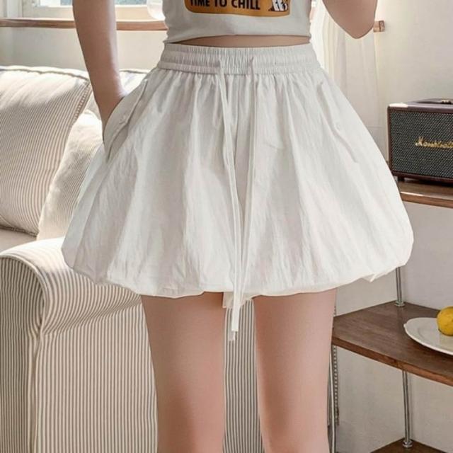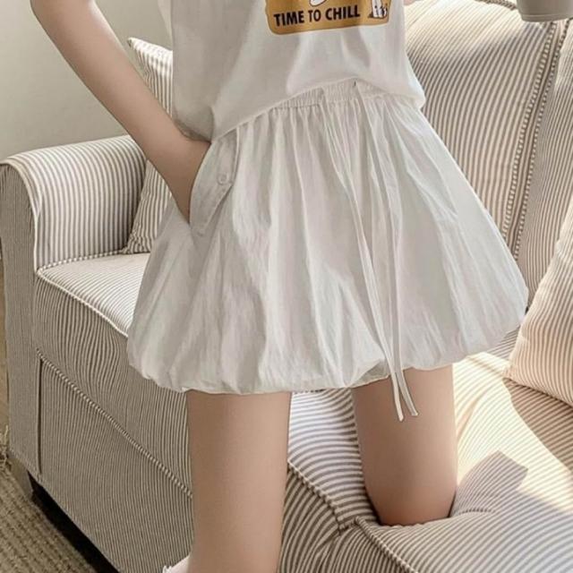 baibeauty 白鳥麗子日系純色泡泡燈籠高腰鬆緊綁帶褲裙