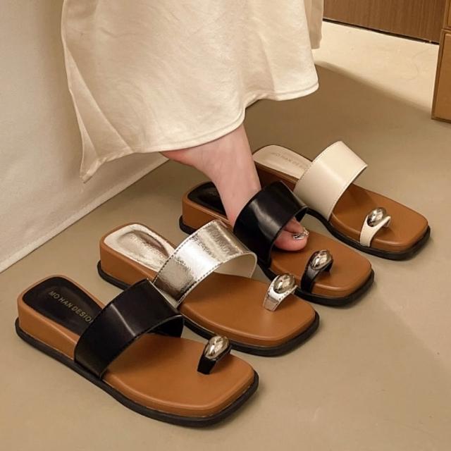 baibeauty 白鳥麗子楔型鞋.簡約金屬寬帶套趾厚底拖鞋