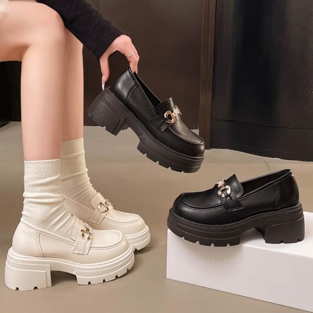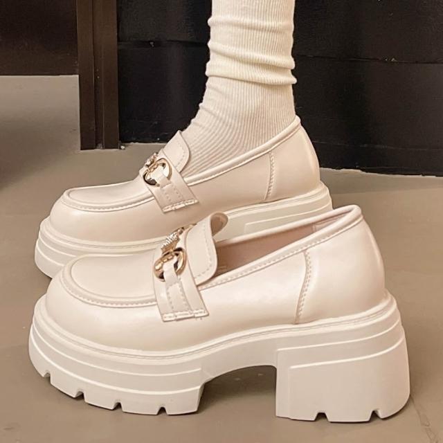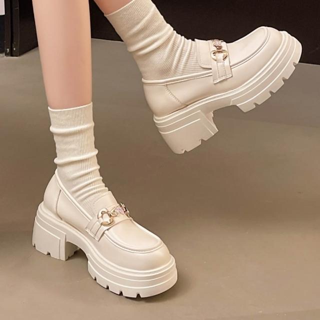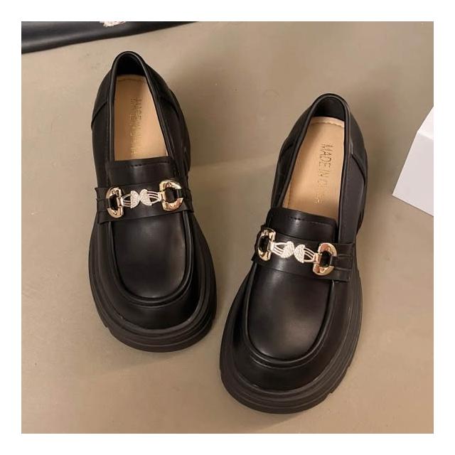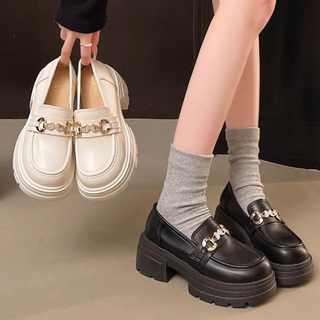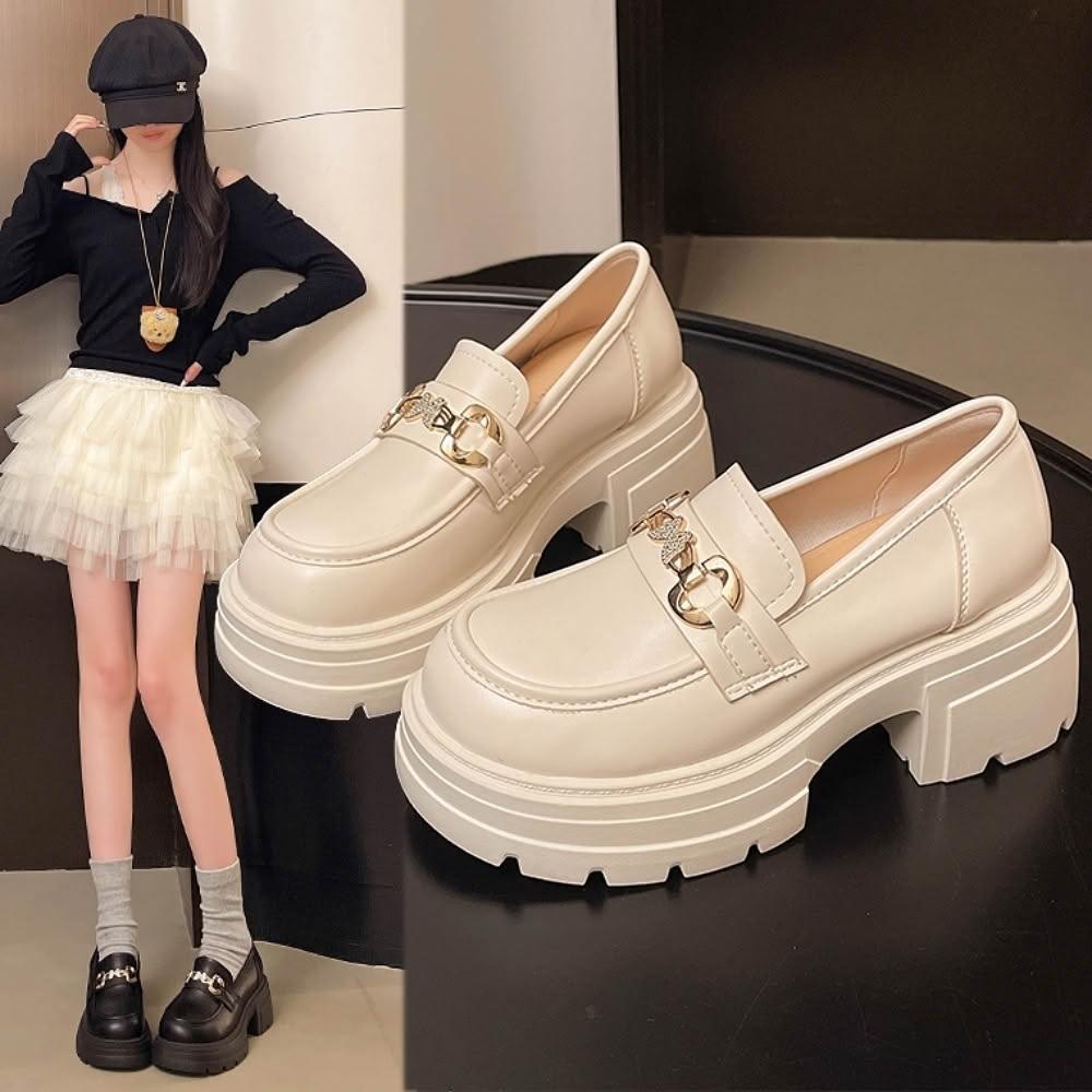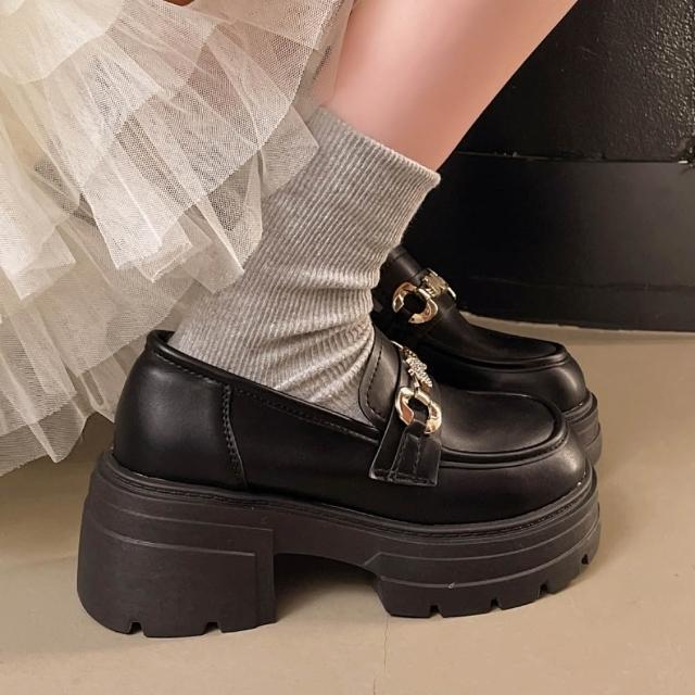 baibeauty 白鳥麗子小皮鞋.學院風蝴蝶結水鑽圓頭粗跟包鞋