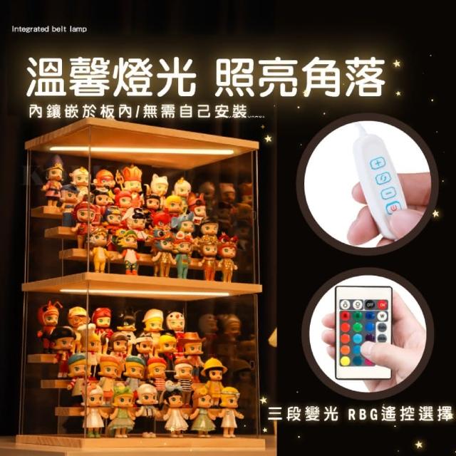 Fien Home木質公仔展示盒-二層RGB燈光款(公仔收納盒 模型展示 公仔展示 盲盒展示 玩具收納 娃娃 扭蛋 模型公仔)