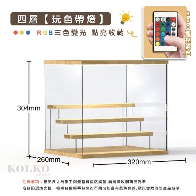 Fien Home木質公仔展示盒-四層RGB燈光款(公仔收納盒 模型展示 公仔展示 盲盒展示 玩具收納 娃娃 扭蛋 模型公仔)