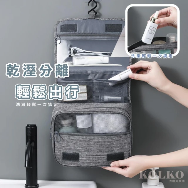 Fien Home加厚版可掛式盥洗包(旅行收納包 出差 化妝包 洗漱包 瓶罐收納包 小物收納包 過夜包)