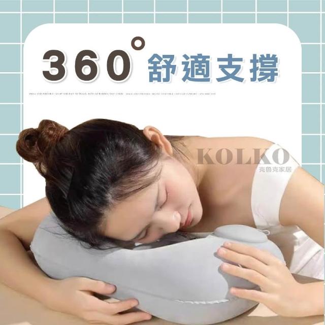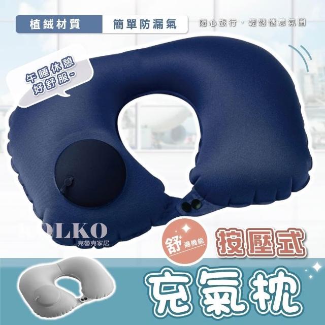Fien Home植絨按壓快速充氣頸枕(護頸枕 飛機枕 旅行枕 U型枕)