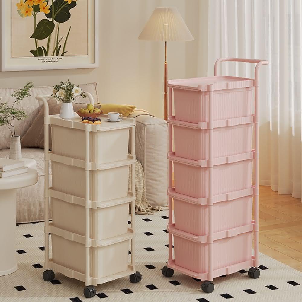Fien Home奶油風抽屜收納推車(收納籃 桌下矮櫃 書架 收納架 化妝品收納 浴室收納 廚房收納)