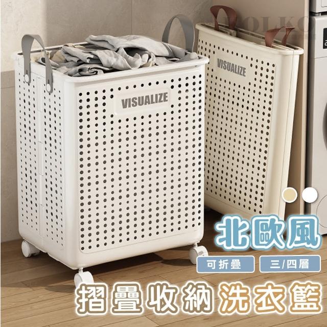 Fien Home可折疊帶輪髒衣籃 (附輪子 手提髒衣籃 摺疊洗衣籃 大容量洗衣籃 縫隙置物推車)