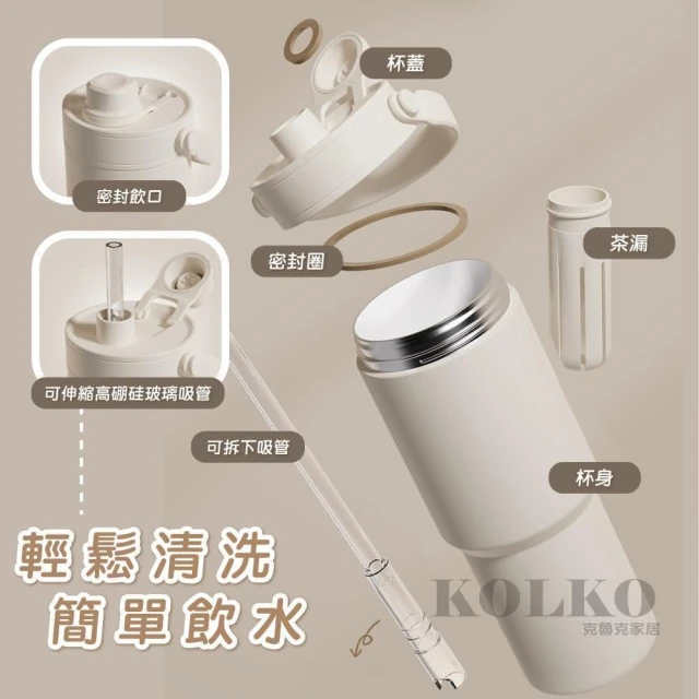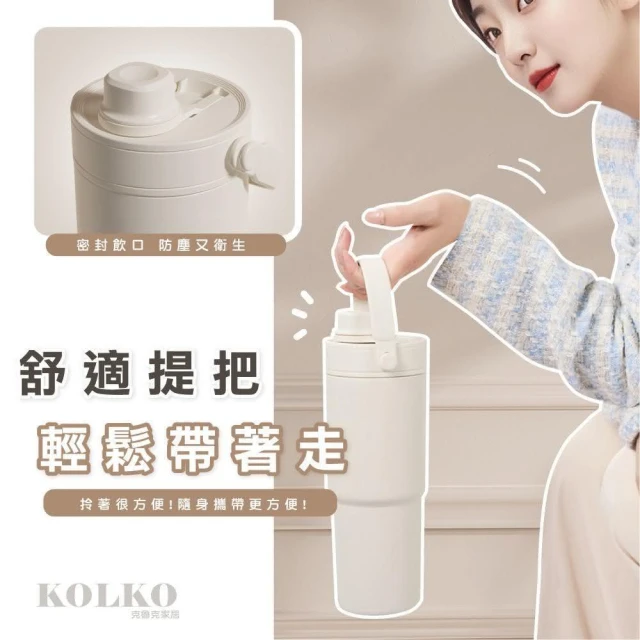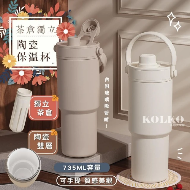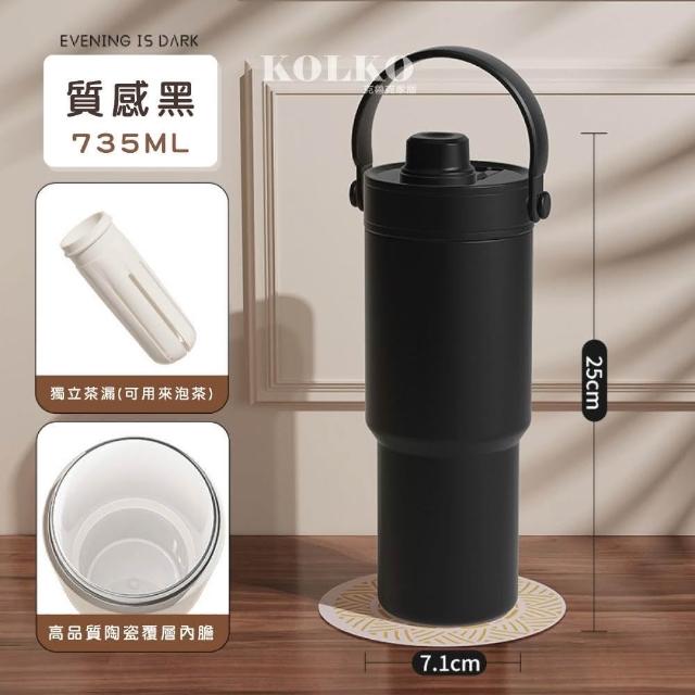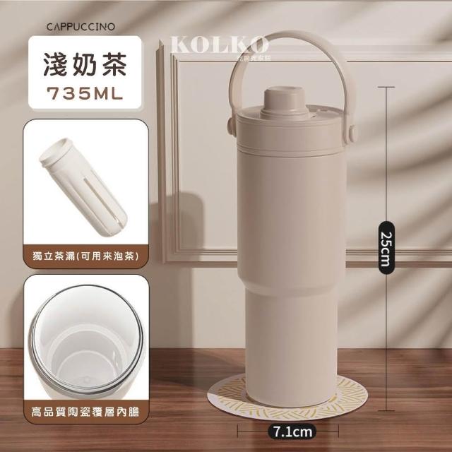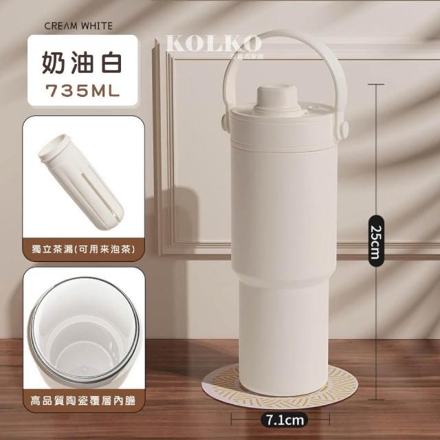 Fien Home超輕量不鏽鋼陶瓷保溫杯735ml (吸管杯 冰霸杯 保溫瓶 隨行杯 陶瓷內膽)