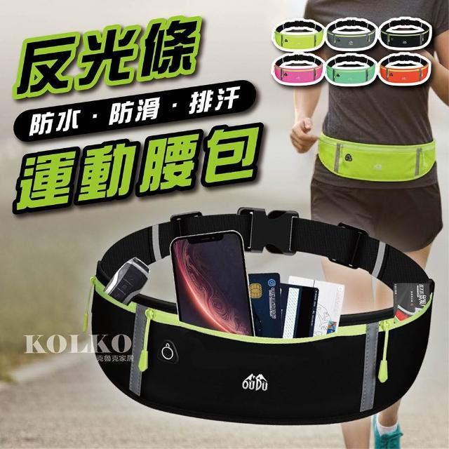Fien Home多功能運動跑步夜光安全腰包 貼身腰包 手機包 跑步腰包 夜跑 反光 休閒運動包 腰帶包