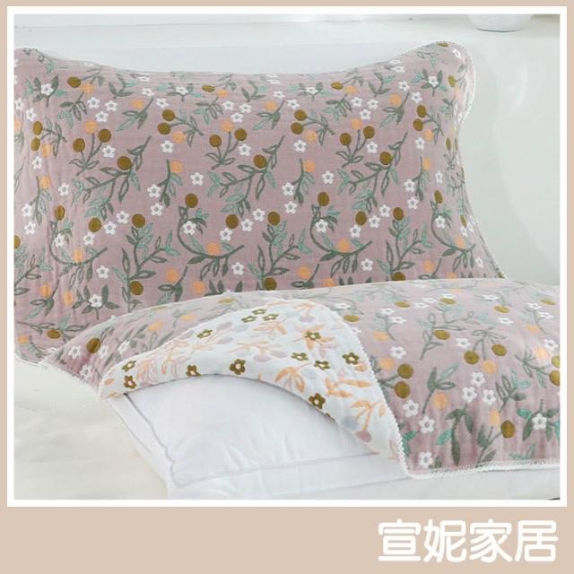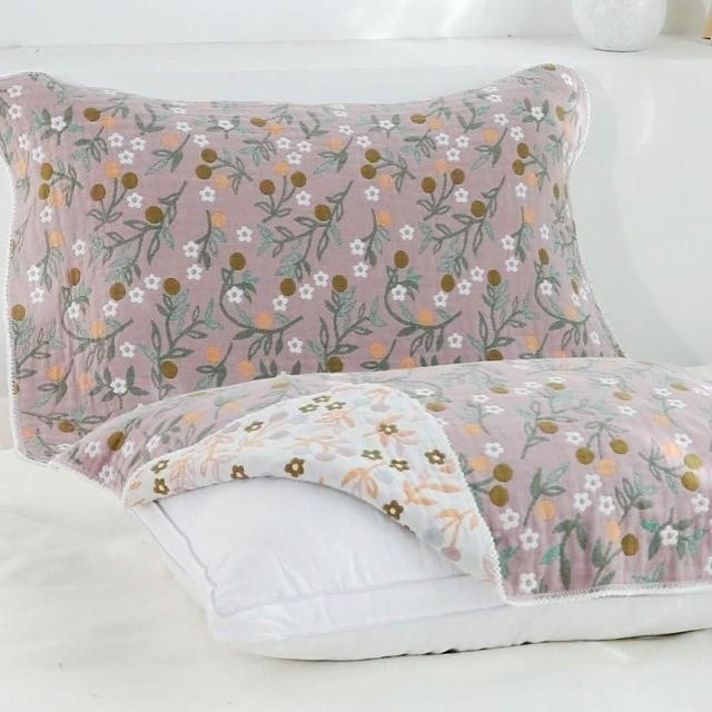 妮家居(單條) 日系四層紗【田園碎花枕巾 一片式枕巾 旅行用枕巾 枕頭巾