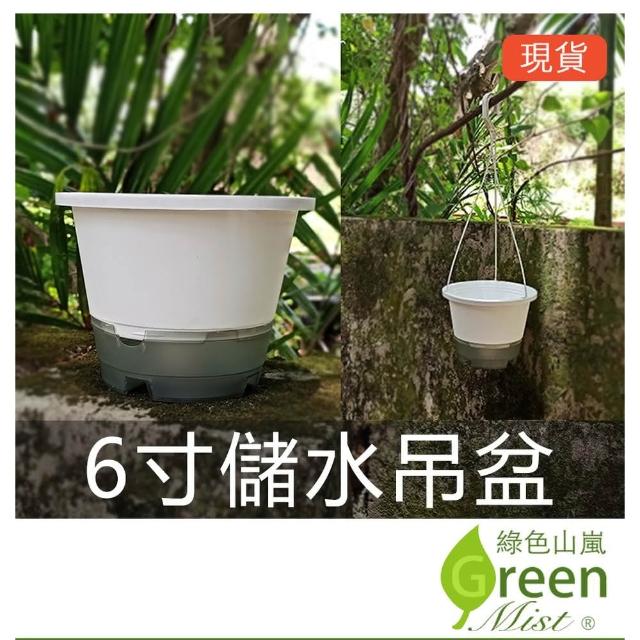 綠色山嵐6寸儲水吊盆(含吊勾) 塑膠花盆 圓盆 花盆 塑膠盆 6吋盆 懶人花盆 儲水花盆 綠色山嵐