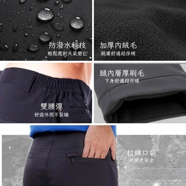 戶外趣男禦寒防風防潑水彈性輕量軟殼褲抓絨長褲(HMP007 銷光灰)