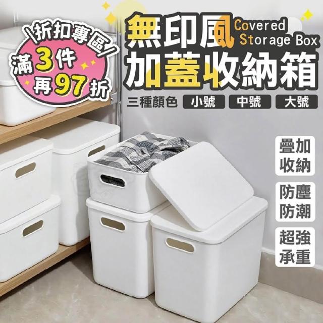 Finger Pop 指選好物無印風加蓋收納箱-大號 中號 小號 附蓋收納盒 防塵收納盒 有蓋收納盒 帶蓋收納盒