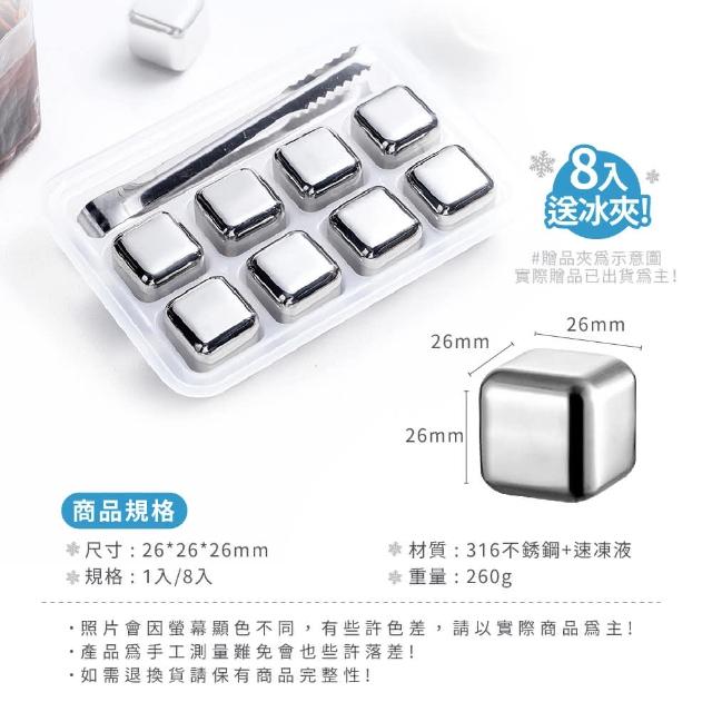 316不鏽鋼冰塊-8入組 贈冰夾不鏽鋼 冰球 冰石 冰塊 環保冰塊