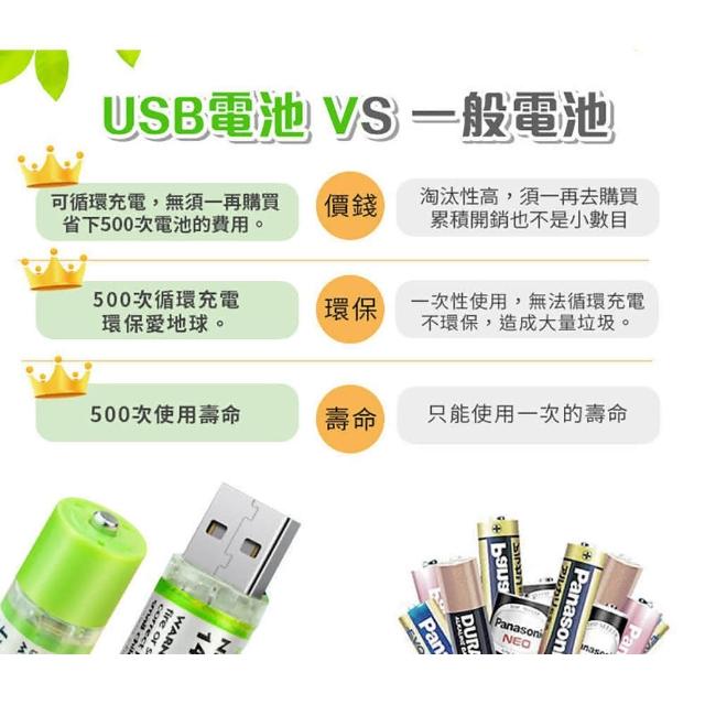 USB充電電池-USB直接充電 充電電池 充電電池 非鹼性碳鋅電池