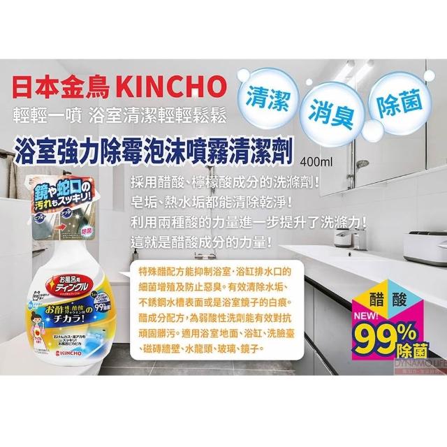 KINCHO 日本金鳥廁所 浴室 強力除霉泡沫噴霧清潔劑(400ml) 排水口清潔 除臭 浴室 不銹鋼水槽 水槽清潔 除水垢 除臭 防垢