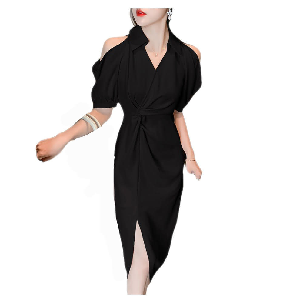 Mini 嚴選高雅V領露肩連身裙(兩色 連身裙)