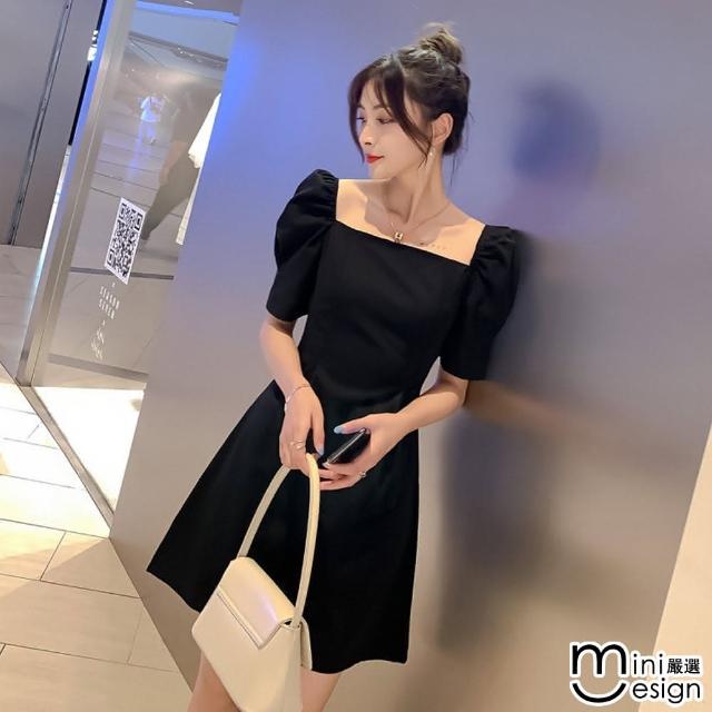 Mini 嚴選一字領泡泡袖洋裝(黑色)