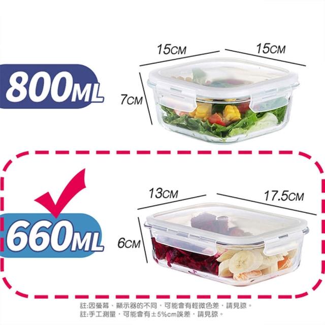 收納女王660ML-耐熱玻璃保鮮盒17.5x13cm(保鮮盒 密封盒 便當盒)