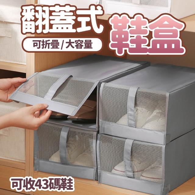 收納女王透氣網可折疊布藝鞋盒(收納盒有蓋 衣服收納盒 置物盒)