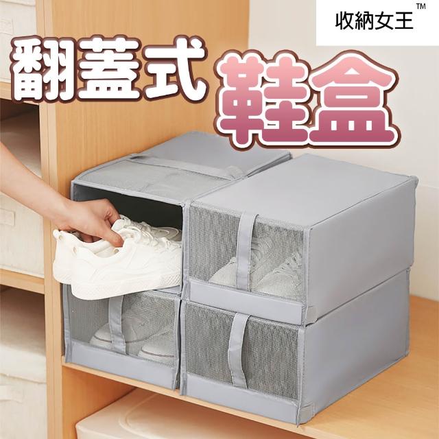 收納女王透氣網可折疊布藝鞋盒(收納盒有蓋 衣服收納盒 置物盒)