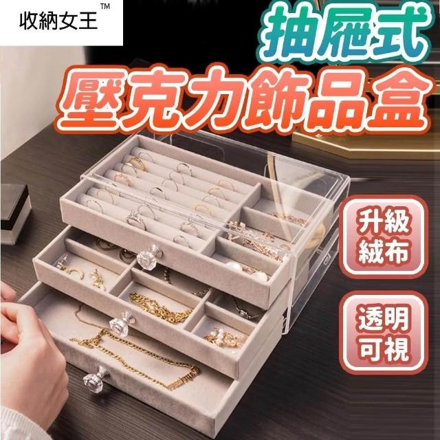收納女王高級晶透壓克力絨布 首飾盒(珠寶盒 耳環收納盒 戒指收納盒)