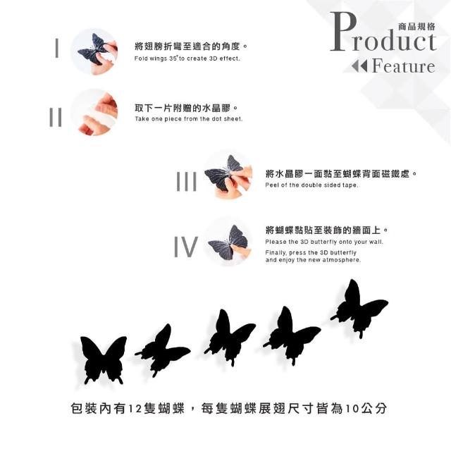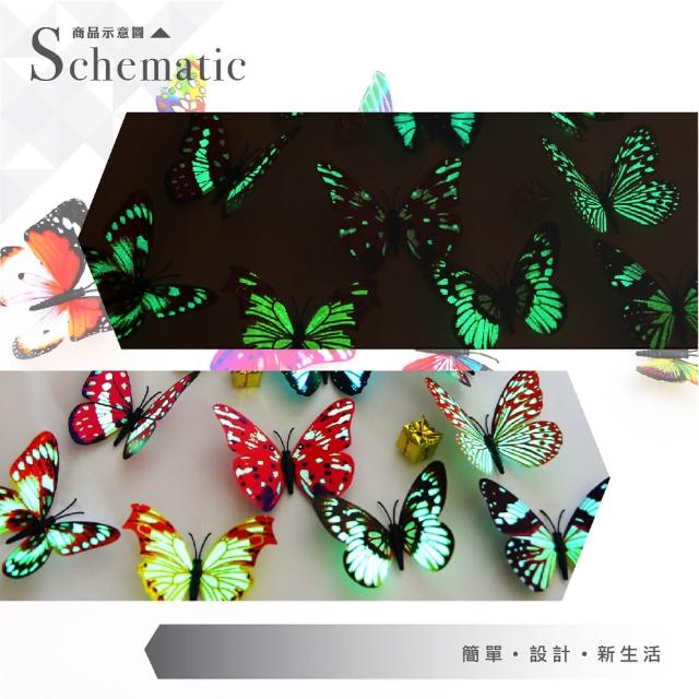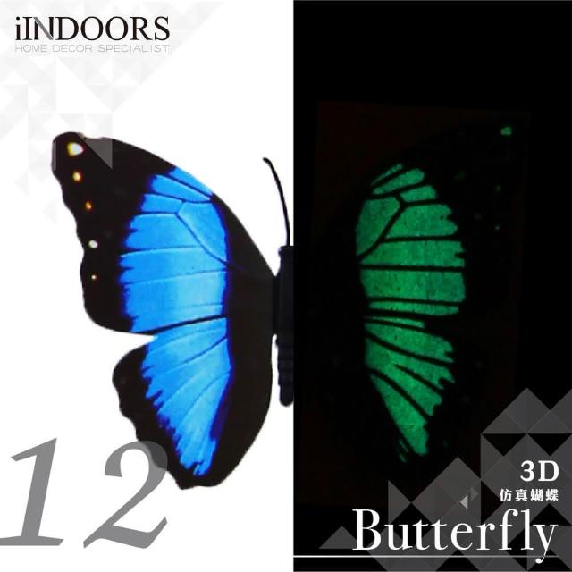 iINDOORS 英倫家居立體3D仿真蝴蝶(夜光12入)