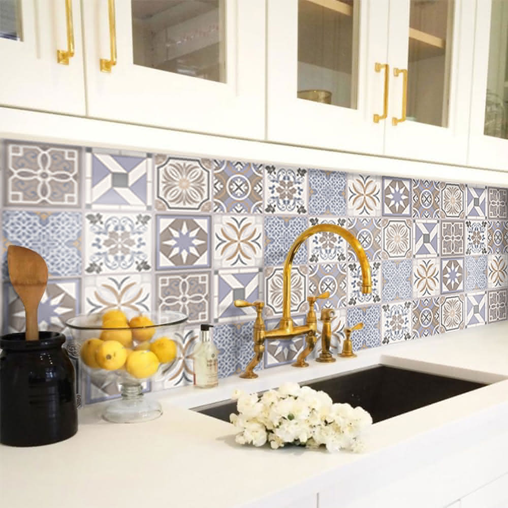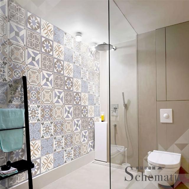 iINDOORS 英倫家居西班牙花磚貼 BK款二入(踢腳線 自黏壁貼 壁紙)