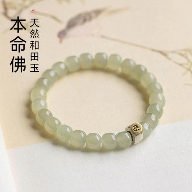 LEESA和田玉手串\和田玉桶珠\本命佛\青海老料\手鍊\手珠\佛珠 玉珠手串\玉手鍊\平安手鍊\送媽媽