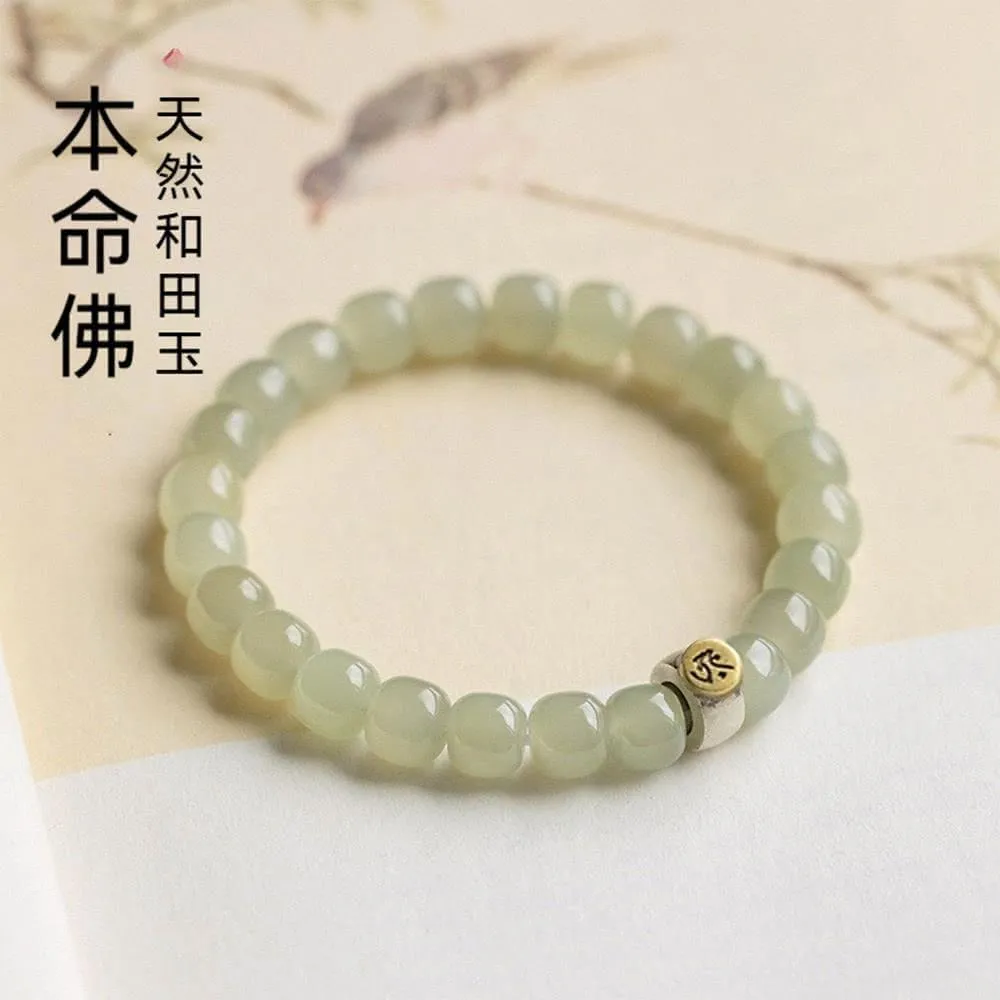 LEESA和田玉手串\和田玉桶珠\本命佛\青海老料\手鍊\手珠\佛珠 玉珠手串\玉手鍊\平安手鍊\送媽媽