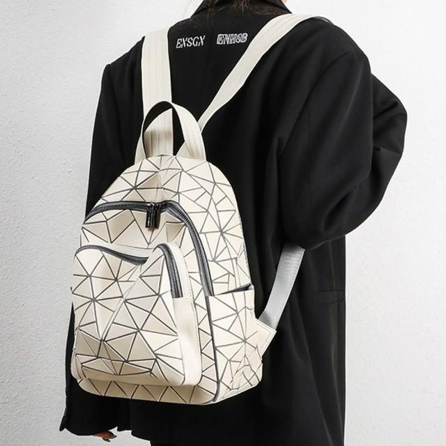 LEESA菱格後背包\大容量後背包\白色包包\造型包包\日本包包\書包\休閒背包\旅行後背包\情侶包包\禮物