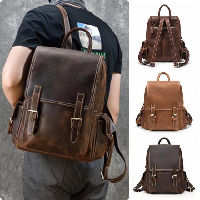 LEESA牛皮後背包\真皮背包\英倫復古背包\歐美背包\大容量後背包\復古書包\真皮旅行背包\文青背包\男生